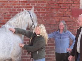 Danach wurde ein Pferd mit einem anderen Rücken, Marions Berber, "verdonnert" und musste als Anschauungsmaterial herhalten. Er wurde aber auch mit vielen Streicheleinheiten belohnt und nahm das Ganze sehr gelassen - Berber halt. An ihm wurde das bereits Gelernte wiederholt und, für ihn abgewandelt, angewendet.